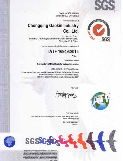 2016年12月開始策劃ISO9001:2015、IATF16949:2016新版認證、轉證認證工作,2017年4月邀請BSI(英標認證技術培訓公司)到我司對ISO9001:2015、IATF16949:2016標準進行培訓,同時進行了內審員培訓,公司領導高度重視,全公司各副總、部長、經理、主管、班組長、質量和技術工程師參加了培訓,有35人獲得內審員資格證;培訓后由各部門負責人新自修訂及新增體系文件,建立了一套符合國際質量標準和汽車質量管理體系,通過對全員的宣傳、培訓,于2017年6月正式運行新版體系,2017年9月SGS認證公司審核專員蒞臨我司,在公司體系專員的陪同下、各部門負責人、全體員工的積極配合下,外審專員對我司質量管理體系進行了細致嚴謹的審核,ISO9001:2015、IATF16949:2016新版和轉證的認證順利通過,同時也是對我司質量管理工作的一種肯定,進一步證明了我公司產品的高質量水平。